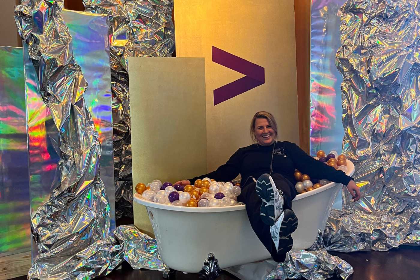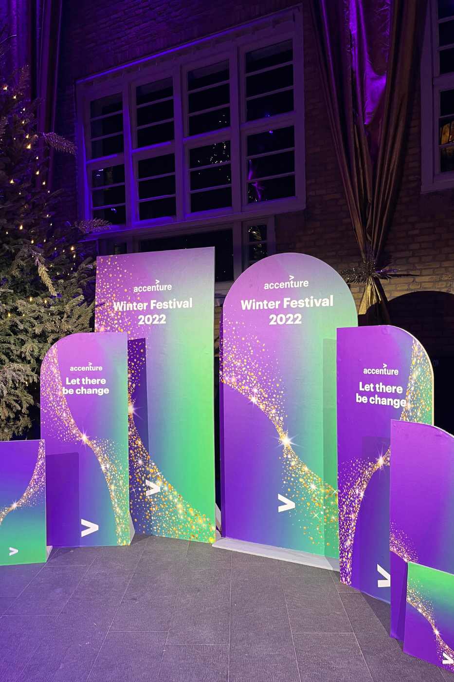 Als er veel gasten komen, moet je op niveau nadenken over routing, programmering en aankleding. Dit deden we samen met Accenture, voor Accenture. Er waren veel, echt veel kerstbomen. Er was een ballenbak met ballen in de merkkleuren, een backdrop wand waar je spontaan van ging spacen, de hoogste champagne toren ooit, en vooral heel veel blije bezoekers!